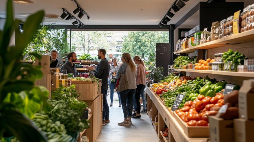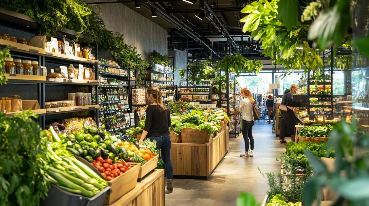La zone marché du magasin met en avant les fruits et légumes de saison, cultivés dans un rayon de moins de 100 kilomètres. Cette proximité garantit non seulement la fraîcheur des produits, mais elle soutient également l'économie locale et réduit l'impact environnemental lié au transport. Le rayon frais représente 40 pour cent du chiffre d'affaires total du magasin, illustrant l'importance accordée à cette catégorie de produits par les consommateurs.